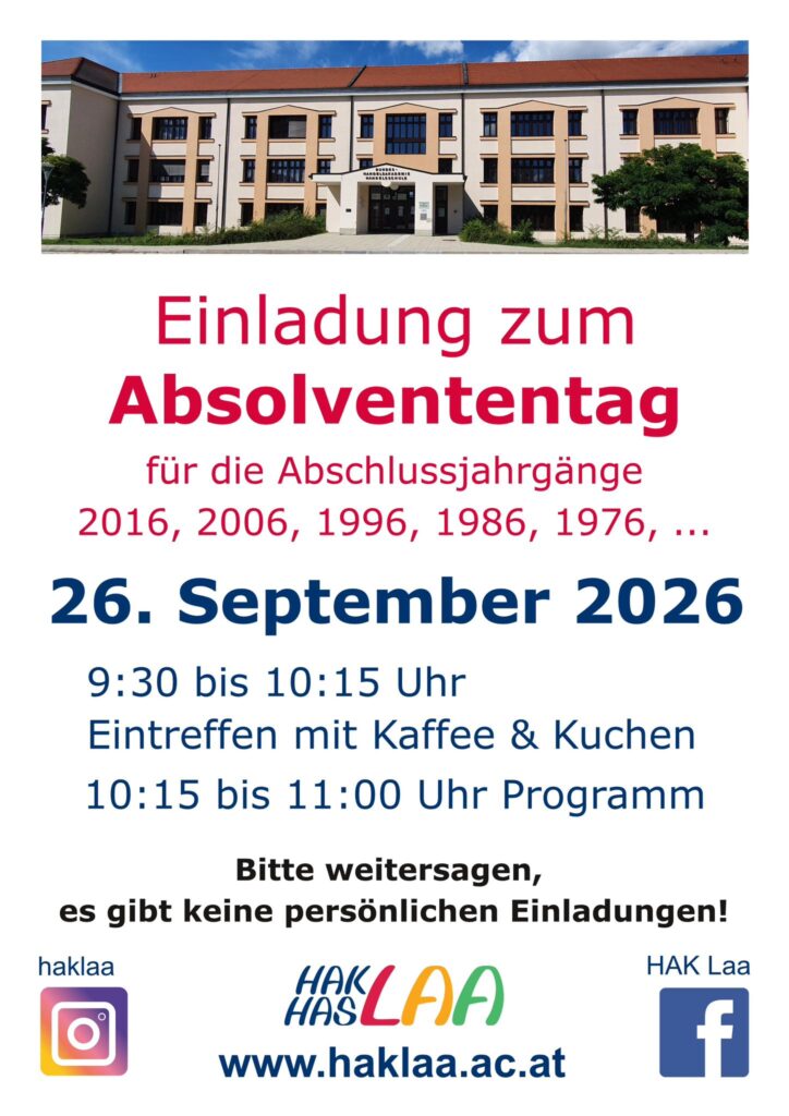Unser Absolventenverband ist der Verein der Freunde, Förderer und Absolventen der BHAK und BHAS Laa/Thaya.